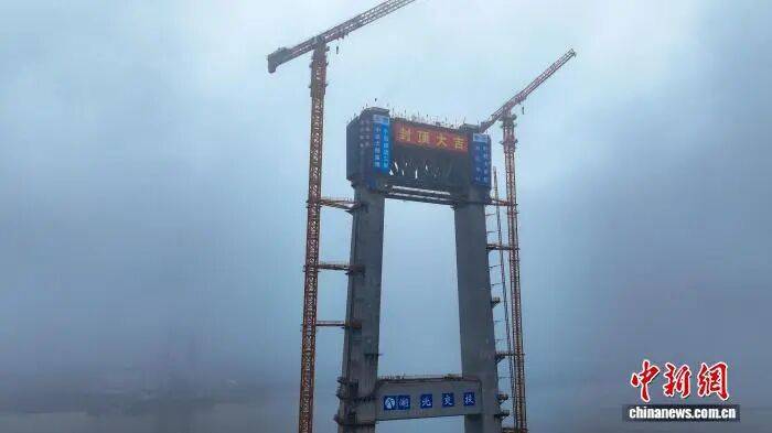 中新网荆州2月9日电 (吴淘淘 李晓鹏 张钰妍)由湖北交投集团投资,中建三局、中铁建大桥局承建的荆州李埠长江公铁大桥,南北两岸主塔9日封顶,标志着这项工程正式转入上部结构施工阶段。